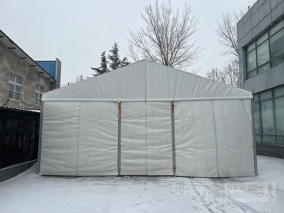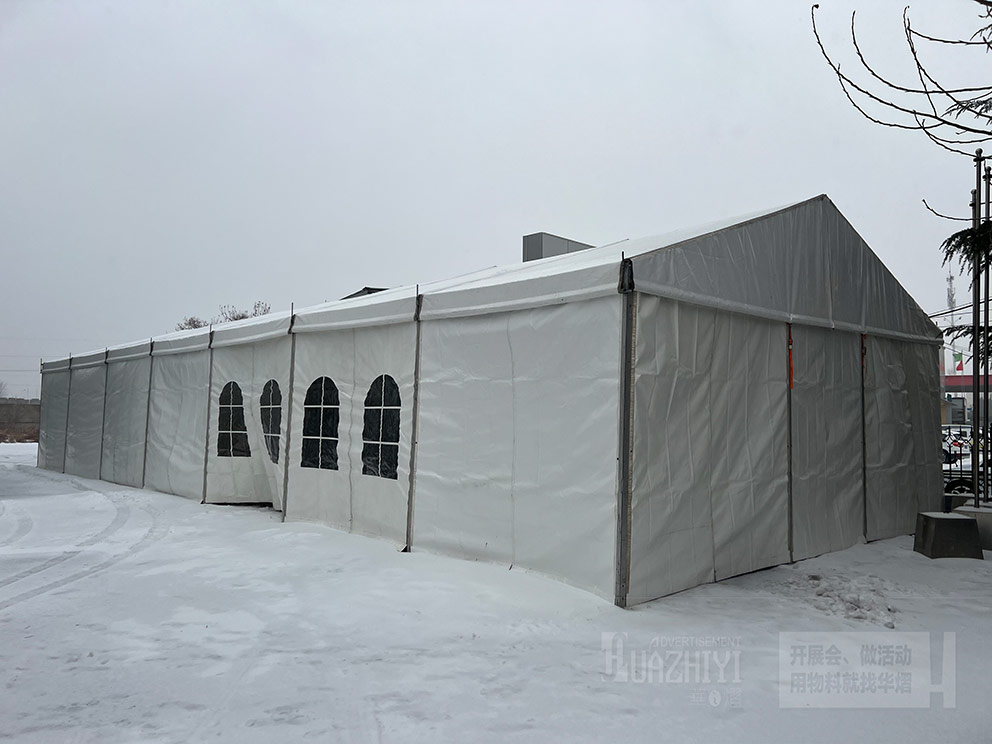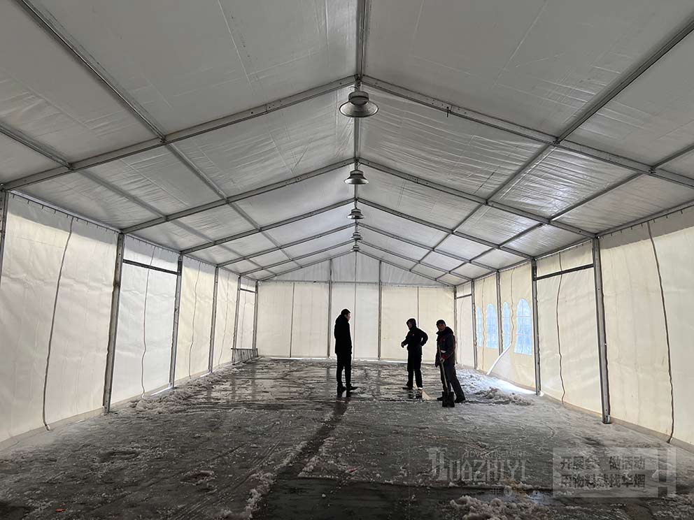 華之熠篷房的篷布是有保溫材料的,可以阻擋一部分寒冷空氣,同時建議您配備上取暖設(shè)備,正常開啟暖風機或空調(diào)的情況下,在雪天,篷房頂部也不會有太多積雪,也能夠進一步提高室內(nèi)溫度,確保篷內(nèi)工作人員可以感受到溫暖和舒適。