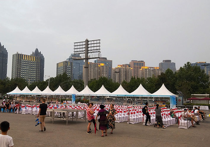 鄭州尖頂篷房租賃出租公司搭建對基礎要求不高,可充分利用部分空地進行搭建 ,