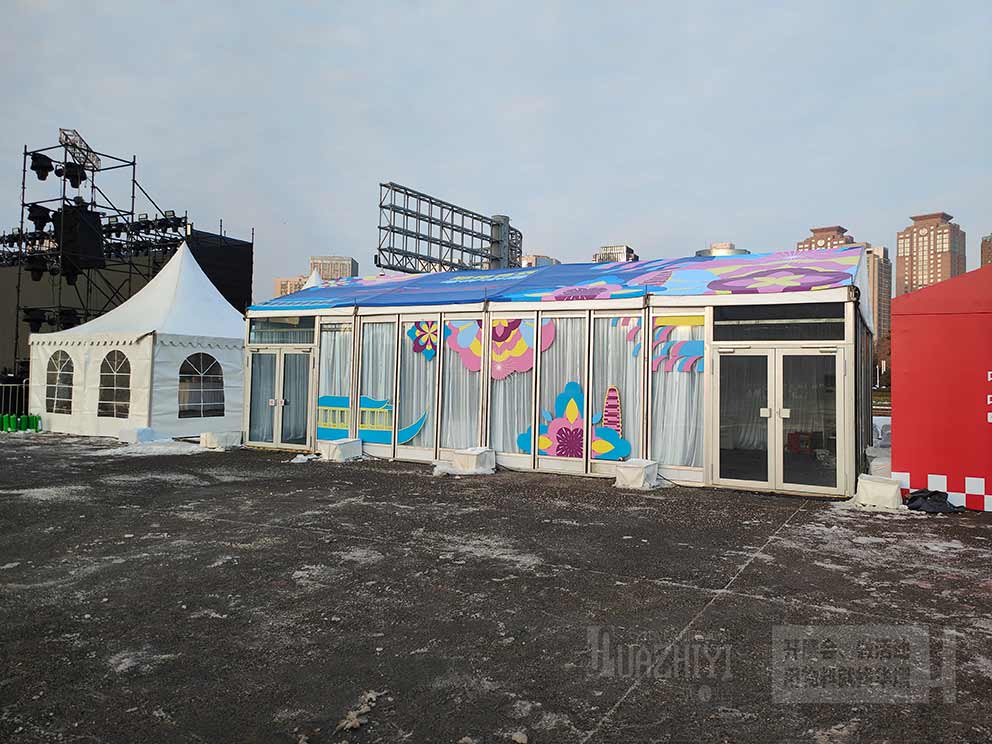 像此次的燈會慶典活動,為了適合活動需求,就在篷房外部做了裝飾畫面,創(chuàng)造出了獨特的視覺效果,讓玻璃篷房與現場合二為一,沒有一絲突兀。結構上更是簡單堅固,搭建過程快速而高效,大大幫我們節(jié)省籌備時間和成本。