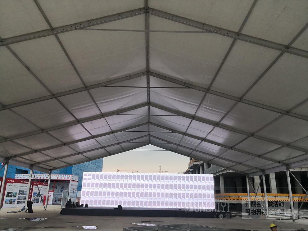 華熠公司篷房材質(zhì)要求也是精益求精,支架的高強(qiáng)度氧化鋁合金材質(zhì)和篷布的高阻燃雙層pvc材質(zhì)。篷房款式也從最開(kāi)始的單一折疊篷房,到后來(lái)的全鋁合金框架篷房,弧形篷房,球形篷房,多邊形篷房等。我公司也在不斷的完善篷房的配套系統(tǒng),如冰箱,紗幔,pvc窗體,桌椅,舞臺(tái)架等。