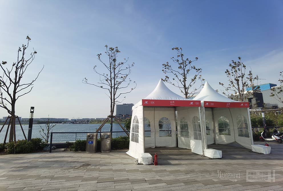 尖頂篷房的組裝及拆卸靈活、簡(jiǎn)便、運(yùn)輸方便。篷布可折疊,框架拆卸后體積小,便于運(yùn)輸和儲(chǔ)存。同時(shí),尖頂篷房對(duì)搭建場(chǎng)地?zé)o特殊需要,一般平地如草地、瀝青地、水泥地、大理石地面均可。這使得尖頂篷房在戶外活動(dòng)中具有更高的靈活性和適用性。