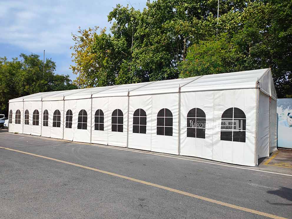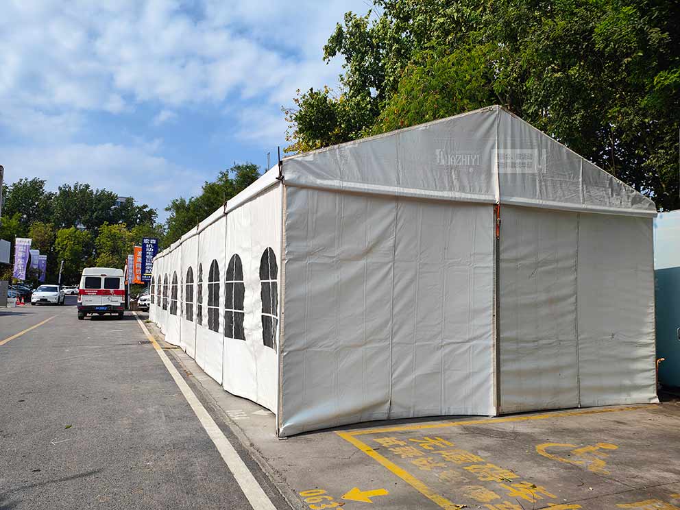 華熠篷房租賃公司憑借豐富的搭建經(jīng)驗(yàn)和專業(yè)的施工團(tuán)隊(duì),在短時(shí)間內(nèi)完成了這座臨時(shí)展廳篷房的搭建工作。我們不僅注重篷房的穩(wěn)固性和安全性,更在細(xì)節(jié)處理上精益求精,確保每一個(gè)細(xì)節(jié)都能達(dá)到更佳效果。