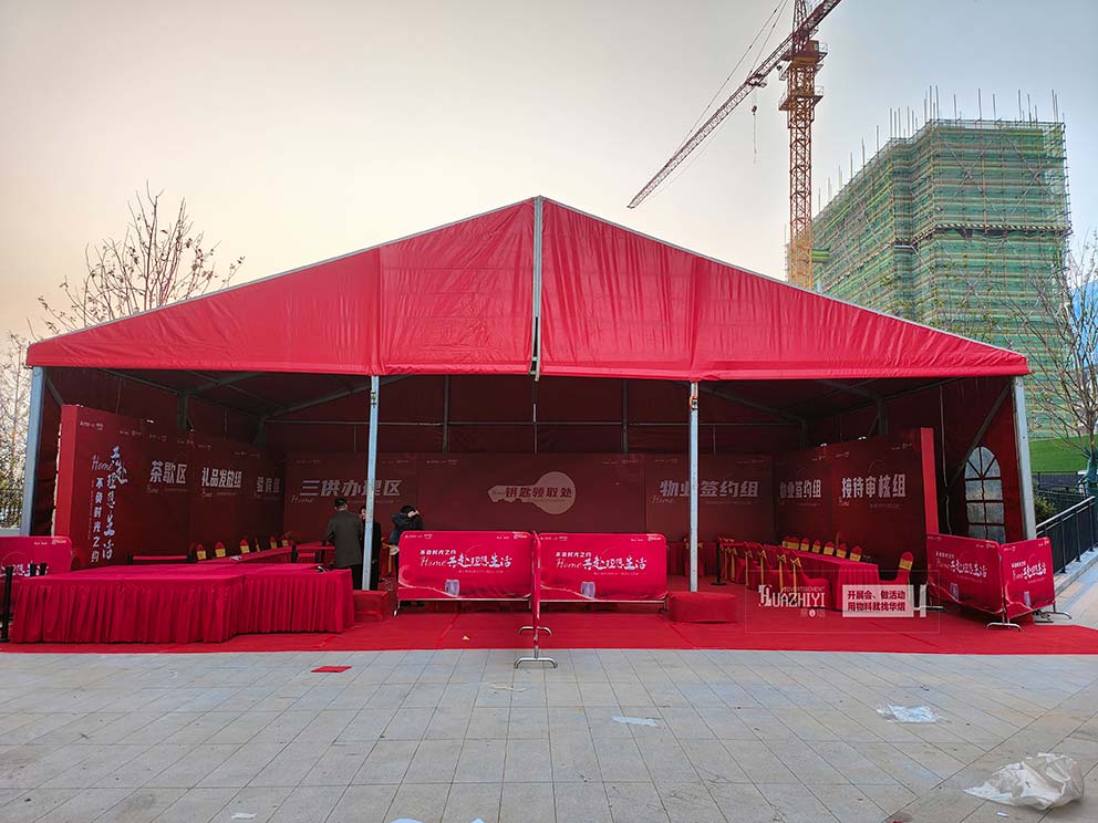 此外,紅色篷房還具有一定的靈活性,可以根據(jù)地產(chǎn)商的實(shí)際需求進(jìn)行定制化設(shè)計(jì)。無(wú)論是篷房的尺寸、形狀還是內(nèi)部布局,都可以根據(jù)項(xiàng)目的特點(diǎn)和購(gòu)房者的需求進(jìn)行調(diào)整,以滿足不同場(chǎng)景下的使用需求。