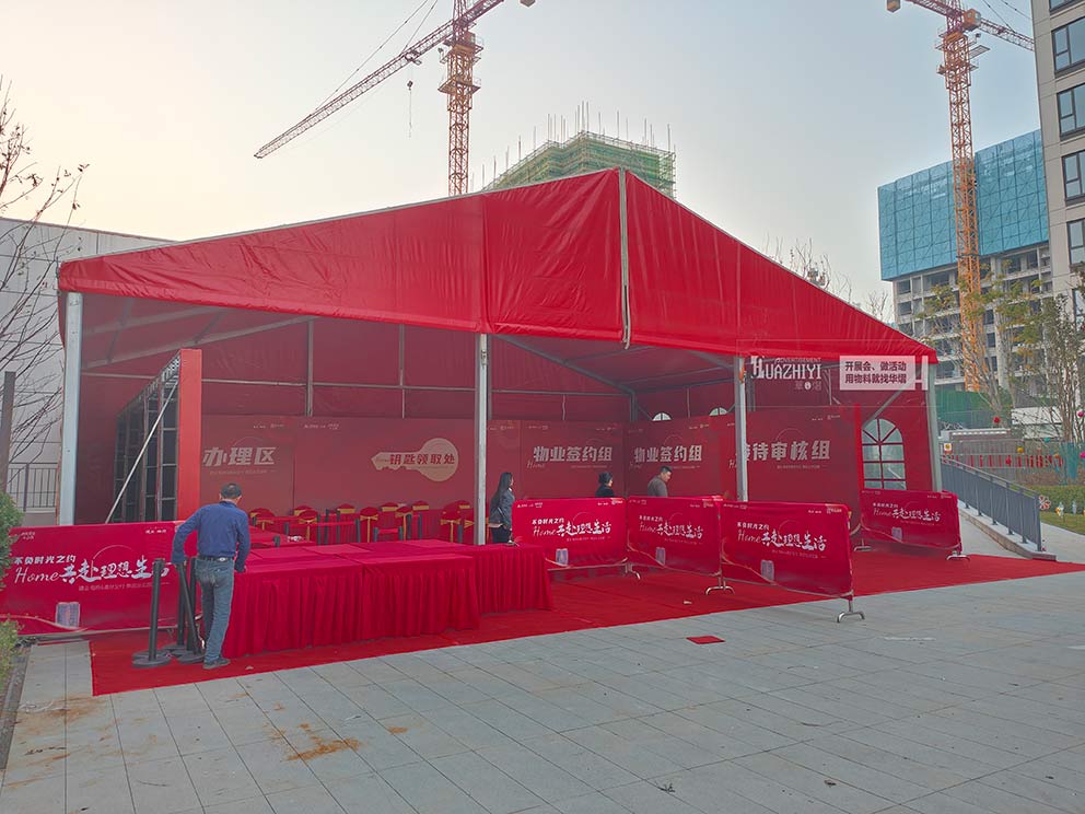 鄭州篷房租賃搭建交房現(xiàn)場(chǎng)紅色地產(chǎn)篷房。在山西晉城的建業(yè)相府交房?jī)x式上,一座紅色的篷房十分引人注目。這是鄭州華熠公司搭建的地產(chǎn)篷房,篷內(nèi)有桌椅、護(hù)欄和明確的指示標(biāo)牌,為到場(chǎng)的業(yè)主們提供了更多的便利。