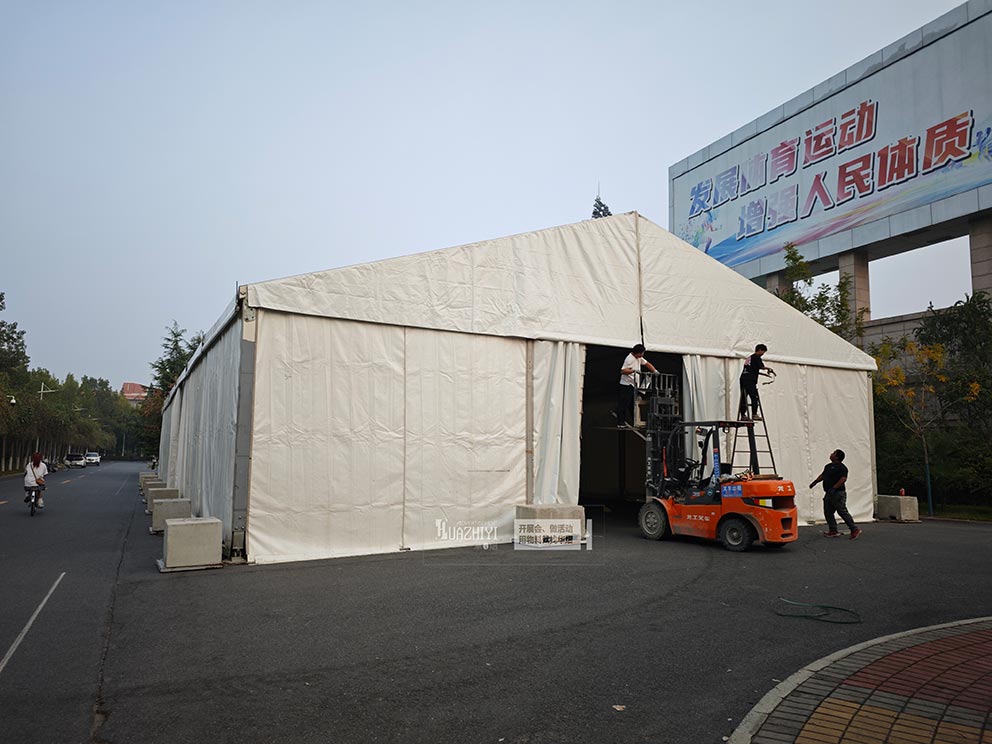 鄭州篷房出租公司搭建雙十一臨時快遞倉儲篷房。倉儲篷房總是會在物流中轉(zhuǎn)或是快件分揀存放方面產(chǎn)生很大的幫助,對于快遞行業(yè)來說,搭建一座倉儲篷房是高效、簡單的支持。