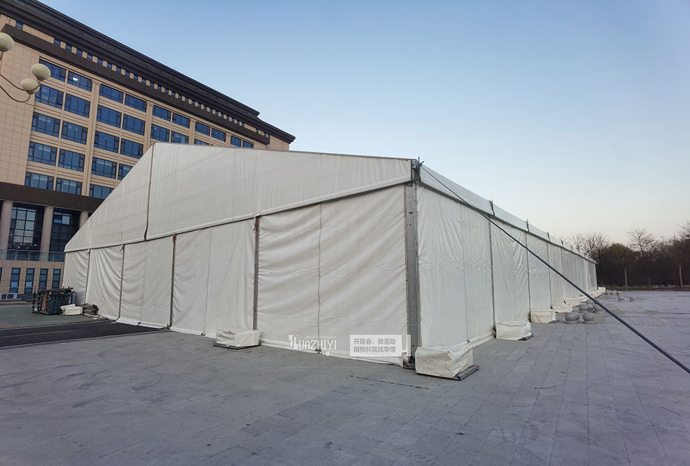 鄭州篷房租賃公司搭建駐馬店技師學(xué)院技能大賽篷房。昨日,鄭州華熠篷房已到河南駐馬店將一座篷房搭建完畢。這座篷房主要是為了舉辦技能大賽而用,使用大石塊配重,完全沒有損壞地面,這樣拆除后地面將不會(huì)有任何變化。