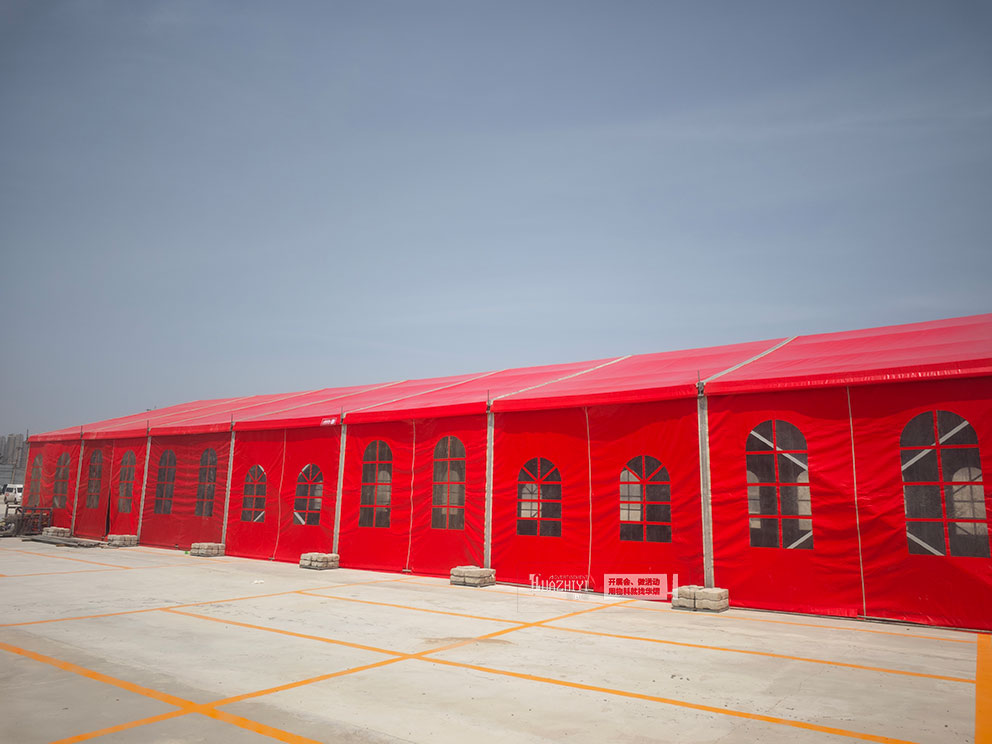 婚慶篷房是夏季婚禮市場的熱門之選。以紅色篷房為例,其鮮艷色彩契合傳統(tǒng)婚慶氛圍,鋁合金框架搭配雙層PVC篷布。內(nèi)部可靈活配置水晶吊燈、紗幔、地毯等裝飾,結(jié)合空調(diào)系統(tǒng),打造舒適浪漫的婚禮空間。鄭州華熠公司曾為多場戶外婚禮提供此類篷房,滿足新人對時(shí)效與美學(xué)的雙重需求。