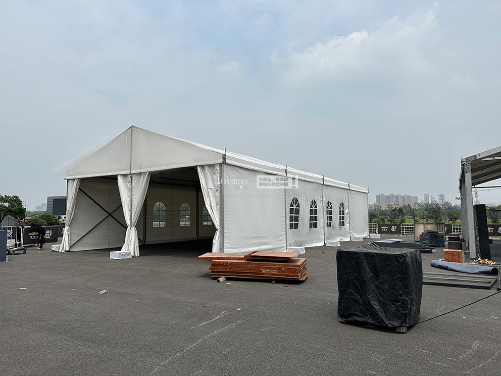 鄭州篷房租賃為秋季活動推薦的篷房,在材質選擇上就自帶“防護屬性”。頂篷優(yōu)先選用雙層 PVC 防雨篷布,外層經過防潑水涂層處理,雨水落在表面會快速滑落,不會滲透。支架則選用鋁合金材質,重量輕但承重與抗風能力強,能有效抵御秋季常見的陣發(fā)性大風,避免支架彎曲或坍塌。